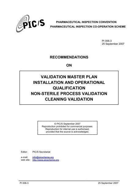 Free Download pi 006 3 recommendation on validation master plan Doc Google eBookstore